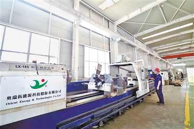奧瑞拓能源科技股份有限公司工作人員正在車(chē)間作業(yè)。記者 賈珺 攝