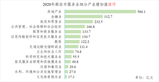 圖1-3?2020年廊坊市服務(wù)業(yè)細(xì)分產(chǎn)業(yè)增加值