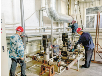 圖為工作人員在檢修供熱設施。