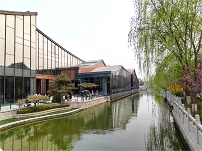 “水云間文化商街位于總投資200億元的夢廊坊·國際戲劇公園度假區(qū)內(nèi),項目規(guī)劃總建筑面積約9萬平方米,全長約1400米,由西側云錦街、東側水悅街、南側水云禮院組成?!崩确凰崎g文化商街運營負責人來艷介紹,文化商街共有西北、巴蜀、南粵、北方四大核心組團,匯聚中國四大流派的特色美食。項目整體營造人美、店美、街美的生活美學和文化社交會客廳,并將進一步塑造成為文旅休閑藝術商業(yè)新地標。試運營兩周以來,游客量已經(jīng)達到了40萬人次,很多都是從北京、天津慕名而來的。