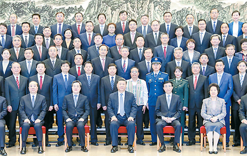 上午10時,習近平等來到京西賓館會議樓前廳,全場響起熱烈掌聲。習近平等走到代表們中間,同大家親切交流并合影留念。