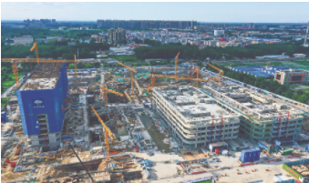6月30日上午,位于廊坊開(kāi)發(fā)區(qū)的中國(guó)醫(yī)學(xué)科學(xué)院腫瘤醫(yī)院河北醫(yī)院一期工程主體結(jié)構(gòu)順利封頂,該醫(yī)院是加快推進(jìn)京津冀協(xié)同發(fā)展和北京非首都功能疏解的重大項(xiàng)目。圖為7月4日,醫(yī)院項(xiàng)目現(xiàn)場(chǎng),工人們正在加緊施工。