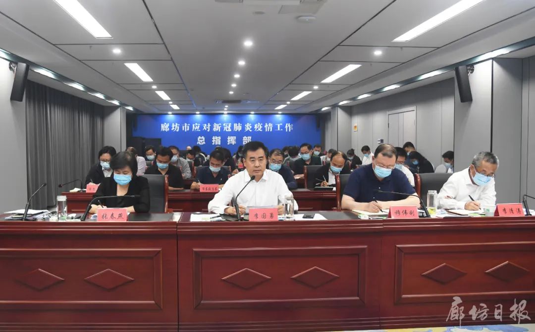 會議強調(diào),要全面加強重點人員排查管控,聚焦涉疫風(fēng)險地區(qū)返廊人員“、借道進京”“中轉(zhuǎn)進京”人員、假期返鄉(xiāng)出游人員等各類重點人群,加強來返廊貨車司機健康管理,落細落實核酸檢測、流調(diào)溯源、隔離轉(zhuǎn)運、遠端管控、信息報備、心理疏導(dǎo)等措施,嚴防疫情隱匿傳播。要配齊配強人員力量,針對國慶假期高速公路出入口人流車流大幅增加的情況,科學(xué)調(diào)配人員力量,合理安排輪崗輪班,確保值班值守人員保持最佳工作狀態(tài),全力以赴筑牢疫情防控防線。要規(guī)范處置涉疫醫(yī)療廢物,緊盯分類收集、貯存轉(zhuǎn)運、交接登記、清潔消殺等關(guān)鍵環(huán)節(jié),及時、有序、高效、無害化處置到位。要細致做好通勤人員服務(wù),用好大數(shù)據(jù)等信息技術(shù)手段,加強通勤人員的精準防控和動態(tài)管理,切實提高通勤人員通行效率,確保群眾安全健康便捷出行。要扎實高效開展督導(dǎo)檢查,各地各有關(guān)部門主要負責(zé)同志要持續(xù)盯緊盯牢域內(nèi)高校、養(yǎng)老機構(gòu)等重點單位、場所,深入一線開展真督實查,對發(fā)現(xiàn)問題要立即整改,做到舉一反三、系統(tǒng)治理,堅決守住不發(fā)生聚集性疫情的底線。
