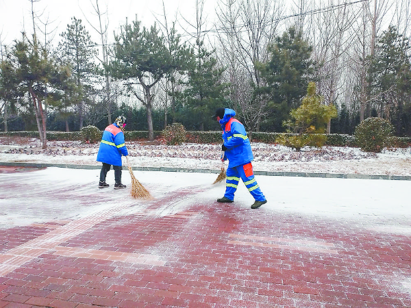 市區(qū)環(huán)衛(wèi)部門全力清雪保路暢人安
