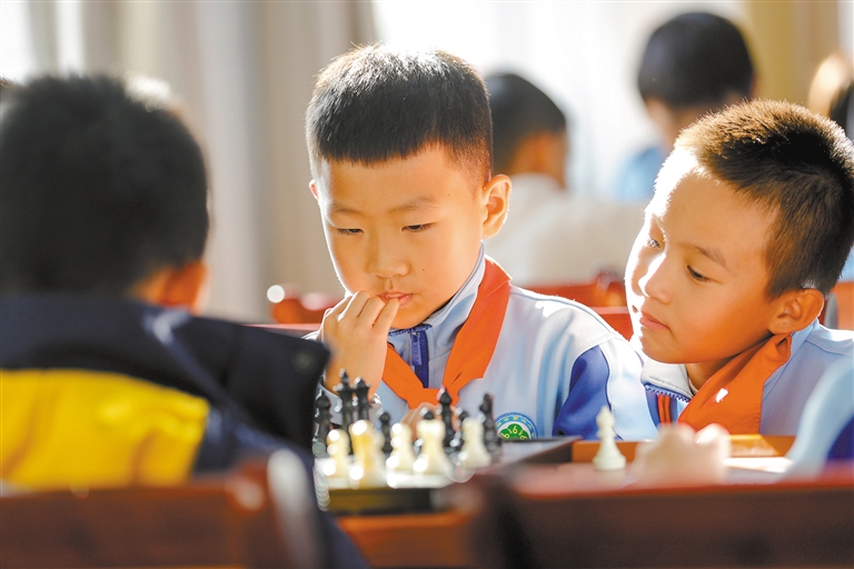 教學樓一樓大廳內(nèi)張貼著學生們親手繪制的河北省內(nèi)各地的地標性建筑物和當?shù)靥厣朗臣叭の稊?shù)學題,學生們?nèi)宄扇?,在講解員的帶領(lǐng)下了解燕趙大地的風土人情并饒有興趣地計算相關(guān)數(shù)學題目。