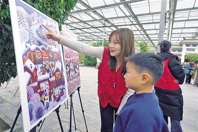 活動(dòng)中,一張張色彩鮮艷、形態(tài)逼真的年畫(huà),為龍年新春增添了濃厚的喜慶氛圍。宣講小分隊(duì)通過(guò)介紹年畫(huà)的由來(lái)和寓意,圍繞新時(shí)代黨和國(guó)家取得的歷史性成就,融入群眾最關(guān)心、關(guān)注的民生實(shí)事,將賞年畫(huà)與理論宣講相結(jié)合,不僅彰顯了中華優(yōu)秀傳統(tǒng)文化散發(fā)的新時(shí)代魅力,還用通俗易懂的語(yǔ)言將黨的創(chuàng)新理論傳播到基層,讓百姓聽(tīng)得懂、解得透。