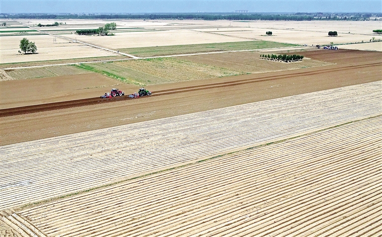 在北魏鎮(zhèn)牛莊村花生種植基地,農(nóng)民正為播種花生做準(zhǔn)備。