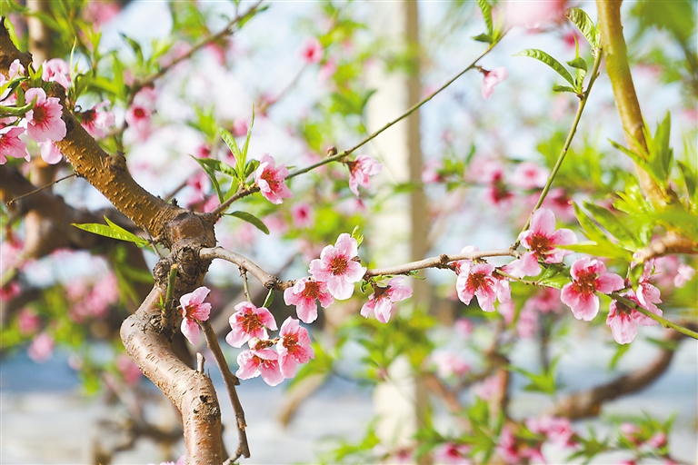 圖為園區(qū)內(nèi)盛開的桃花。