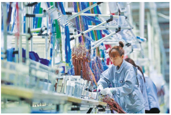 2月21日,廊坊萊尼線束系統(tǒng)有限公司組裝車間內(nèi),工作人員在進行包膠。記者 陳童 攝