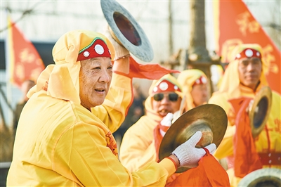 霸州市南孟鎮(zhèn)東北岸村村民敲起歡快的鑼鼓,豐富文化生活。? ? ??