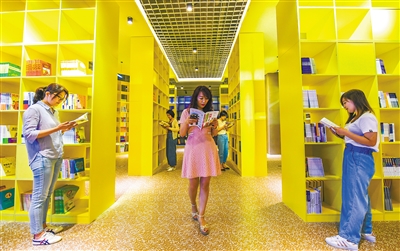 7月19日,市民在新朝陽(yáng)文化創(chuàng)意產(chǎn)業(yè)園一家共享書吧閱讀書籍。 為推進(jìn)公共文化服務(wù)體系建設(shè),近日,廣陽(yáng)區(qū)在轄區(qū)大型商業(yè)綜合體內(nèi)建設(shè)共享書吧,將廣陽(yáng)區(qū)圖書館的書籍免費(fèi)供市民閱讀和借閱。同時(shí),鼓勵(lì)市民捐贈(zèng)圖書,共享圖書資源。