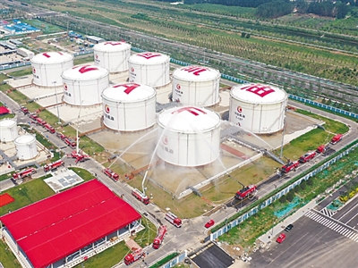 圖為廊坊市消防支隊(duì)參與北京大興國(guó)際機(jī)場(chǎng)油庫(kù)消防應(yīng)急演練。
