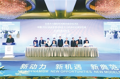 10月10日,以“新動(dòng)力、新機(jī)遇、新典范”為主題的北京大興國(guó)際機(jī)場(chǎng)廊坊臨空經(jīng)濟(jì)區(qū)·中國(guó)(河北)自由貿(mào)易試驗(yàn)區(qū)大興機(jī)場(chǎng)片區(qū)廊坊區(qū)域全球系列招商發(fā)布會(huì)在石家莊市舉行。超級(jí)萬(wàn)象城綜合體、修正華北區(qū)域總部、廊坊臨空港新區(qū)綜合能源服務(wù)、中信海直融資租賃等4個(gè)合作項(xiàng)目正式簽約,項(xiàng)目總投資370億元。