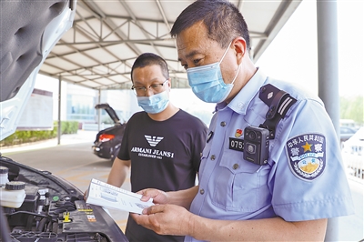 圖為查驗民警對車輛信息進(jìn)行查驗。記者 董旭旭 攝