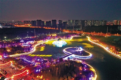 御龍河公園包括生態(tài)景觀區(qū)、娛樂休閑區(qū)、文化景觀區(qū)、濱水游樂區(qū),是南城環(huán)境修復(fù)與城市特色相融合的標(biāo)志性景區(qū)。7月18日,御龍河公園正式開園。圖為俯瞰御龍河公園?!独确蝗?qǐng)?bào)》記者 賈珺 攝