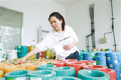 圖為河北盛安線纜有限公司的工作人員正在對家裝電線進行清數(shù)。