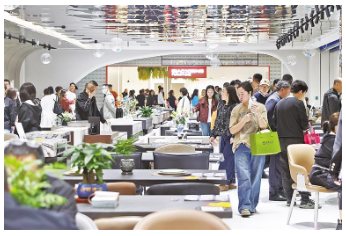 圖為第31屆中國·勝芳國際家具博覽會現(xiàn)場。本報記者 賈珺 攝