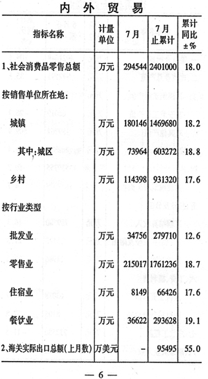 ——消費平穩(wěn)增長。社會消費品零售總額完成240.1億元,同比增長18.0%,與上半年相比增速提高0.1個百分點。其中餐飲業(yè)增長19.1%,是增長最快的行業(yè)。