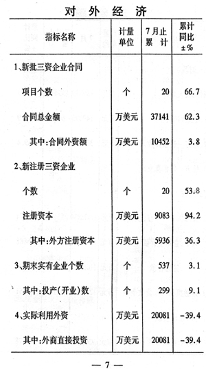 ——外資降幅減緩。實際利用外資完成20081萬美元,同比下降39.4%,與上半年相比降幅減緩了4.7個百分點,全部為外商直接投資。