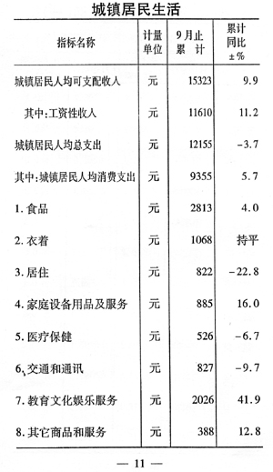 ——居民收入增加。城鎮(zhèn)居民人均可支配收入15323元,同比增加1386元,增長9.9%;在崗職工平均工資25221元,同比增加3579元,增長16.5%;農(nóng)民人均現(xiàn)金收入7956元,同比增加865元,增長12.2%。