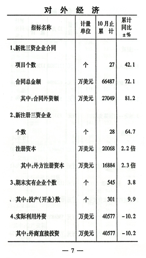 ——外資降幅減緩。實(shí)際利用外資累計(jì)完成40577萬美元,同比下降10.2%,降幅繼續(xù)縮減,比上月縮減3.5個(gè)百分點(diǎn)。