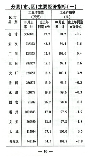 前十個(gè)月全市國(guó)民經(jīng)濟(jì)運(yùn)行情況如下: