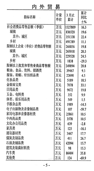 一一消費(fèi)穩(wěn)定增長(zhǎng)。社會(huì)消費(fèi)品零售總額完成132.8億元,增長(zhǎng)16.3%。分城鄉(xiāng)看,城市市場(chǎng)快于農(nóng)村。城鎮(zhèn)實(shí)現(xiàn)消費(fèi)品零售總額83.7億元,增長(zhǎng)19.6%,高于鄉(xiāng)村消費(fèi)8.5個(gè)百分點(diǎn)。