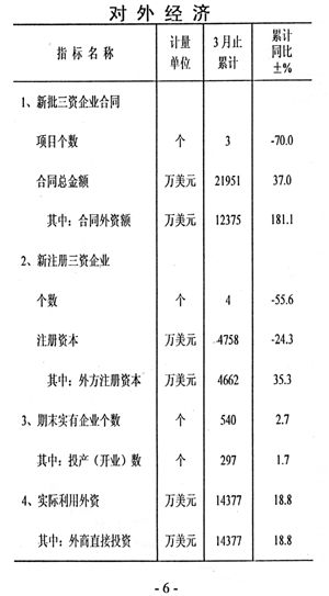 ? 一一外資較快增長(zhǎng)。實(shí)際利用外資完成14377萬(wàn)美元,增長(zhǎng)18.8%,同比提高78.6個(gè)百分點(diǎn)。14377萬(wàn)美元全部為外商直接投資。