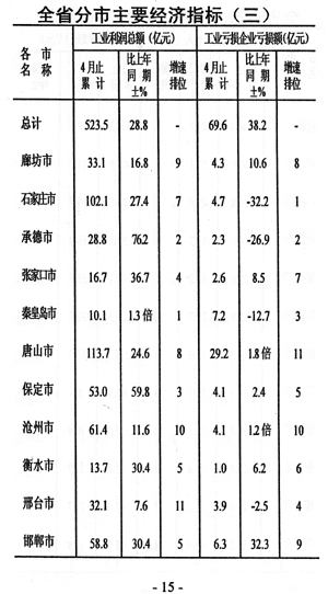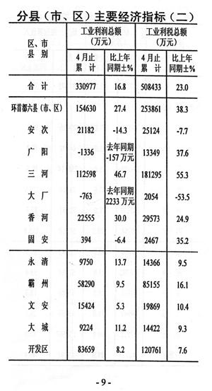 效益增幅減緩。前四個月規(guī)模以上工業(yè)企業(yè)實現(xiàn)利稅和利潤分別為50.8億元和33.1億元,同比分別增長23.0%和16.8%,與一季度相比增速分別回落了6.5個和7.8個百分點。