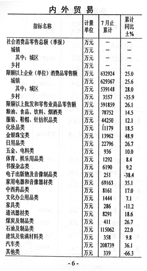 前七個(gè)月,全市國(guó)民經(jīng)濟(jì)運(yùn)行情況如下: