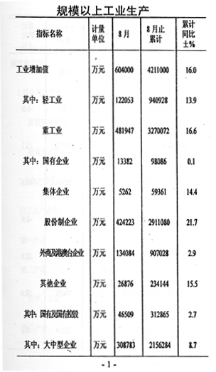 前八個(gè)月,全市國(guó)民經(jīng)濟(jì)運(yùn)行情況如下:
