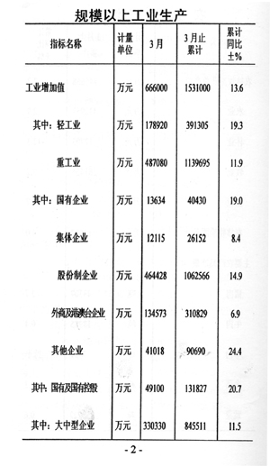 ——工業(yè)穩(wěn)定增長。規(guī)模以上工業(yè)增加值完成153.1億元,增長13.6%,與前兩個月相比增速提高1.1個百分點,與上年同期相比增速回落1.8個百分點。其中輕工業(yè)完成增加值39.1億元,增長19.3%,快于重工業(yè)7.4個百分點,高于全市規(guī)模以上工業(yè)增加值增速5.7個百分點。