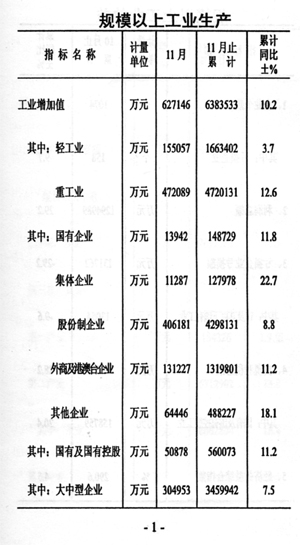 1-11月份,全市宏觀經(jīng)濟(jì)運(yùn)行情況如下: