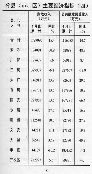 2015年廊坊國(guó)民經(jīng)濟(jì)月報(bào) 第四期