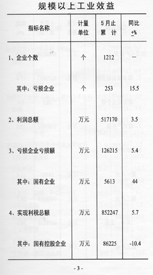 1-5月份,規(guī)模以上工業(yè)實現(xiàn)利潤總額51.7億元,同比增長3.5%;完成利稅總額85.2億元,增長5.7%。