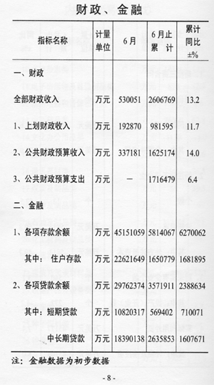 ——財政穩(wěn)步提升。全部財政收入完成260.7億元,同比增長13.2%,比1-5月份提高0.1個百分點。其中,公共財政預(yù)算收入完成162.5億元,增長14.0%,比1-5月份提高0.7個百分點。