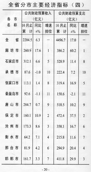 ——財政快速增長。全部財政收入完成445.6億元,同比增長18.2%,增速比1-10月份提高1.5個百分點,比上年同期提高2.0個百分點。其中:公共財政預(yù)算收入279.0億元,增長19.4%,增速比1-10月份提高1.8個百分點,比上年同期回落0.9個百分點。