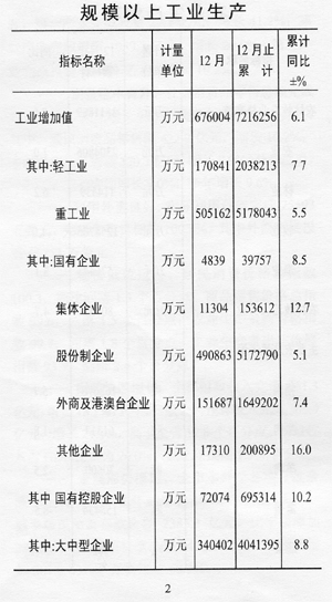——工業(yè)生產(chǎn)總體平穩(wěn)。規(guī)模以上工業(yè)增加值完成721.6億元,同比增長6.1%,高于全省17個百分點,五年來增速首次躍居第二。今年以來,規(guī)上工業(yè)增加值增速變動基本平穩(wěn),波動幅度最多0.2個百分點,6月份最高達6.3%,9月份最低為5.8%。