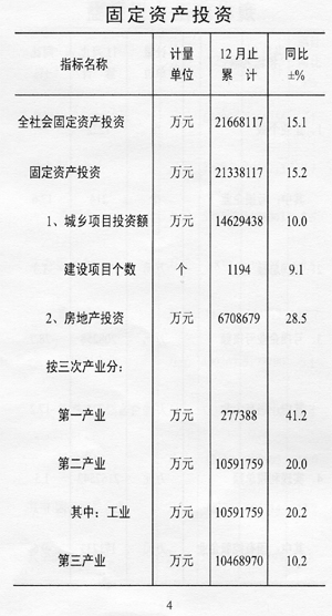 ——投資較快增長。固定資產(chǎn)投資完成2133.8億元,同比增長15.2%,高于全省4.6個百分點。其中,城鄉(xiāng)項目投資1462.9億元,增長10.0%;房地產(chǎn)開發(fā)投資670.9億元,增長28.5%。從三次產(chǎn)業(yè)看,第一產(chǎn)業(yè)完成投資27.7億元,增長41.2%;第一產(chǎn)業(yè)完成投資1059.2億元,增長20.0%;第三產(chǎn)業(yè)完成投資1046.9億元,增長10.2%。