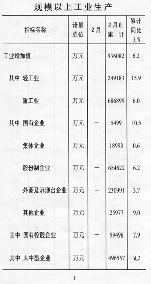 ——工業(yè)平穩(wěn)增長(zhǎng)。規(guī)模以上工業(yè)增加值完成93.6億元,同比增長(zhǎng)6.2%,與上年同期相比提高0.1個(gè)百分點(diǎn)。分輕重工業(yè)看,重工業(yè)實(shí)現(xiàn)增加值68.7億元,增長(zhǎng)6.0%,慢于輕工業(yè)9.9個(gè)百分點(diǎn)。