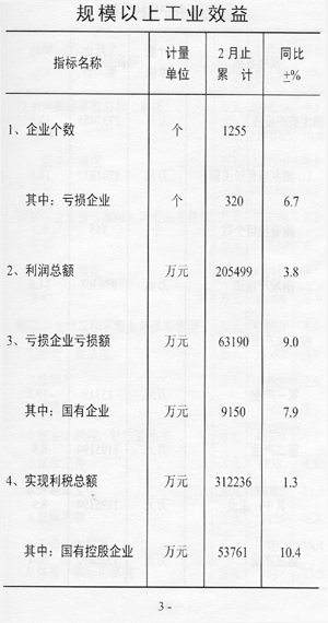 1-2月份,規(guī)模以上工業(yè)完成利潤總額20.5億元,同比增長3.8%,比上年同期回落3.7個百分點;完成利稅總額31.2億元,增長1.3%,比上年同期回落9.8個百分點。