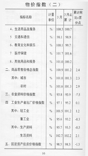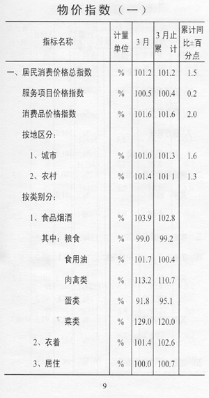 ——物價保持穩(wěn)定。全市居民消費價格總指數(shù)101.2,同比上漲1.5個百分點;商品零售價格總指數(shù)101.2,同比上漲2.4個百分點;農(nóng)業(yè)生產(chǎn)資料價格指數(shù)93.9,同比回落7.5個百分點;工業(yè)生產(chǎn)者出廠價格指數(shù)95.2,同比上漲0.1個百分點。