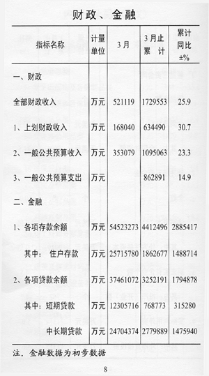——金融形勢平穩(wěn)。截至3月底,全市本外幣各項存款余額5452.3億元,比年初增加441.2億元,其中住戶存款余額2571.6億元,比年初增加186.3億元;各項貸款余額3746.1億元,比年初增加325.2億元。