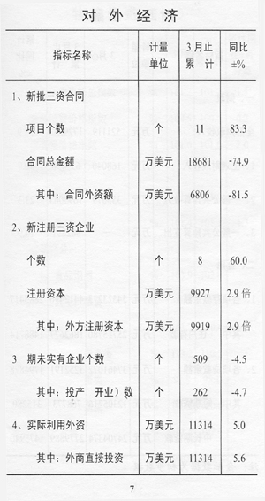 ——利用外資增加。全市實際利用外資11314萬美元,同比增長5.0%,比上年同期回落1.0個百分點。其中:外商直接投資11314萬美元,增長5.6%。