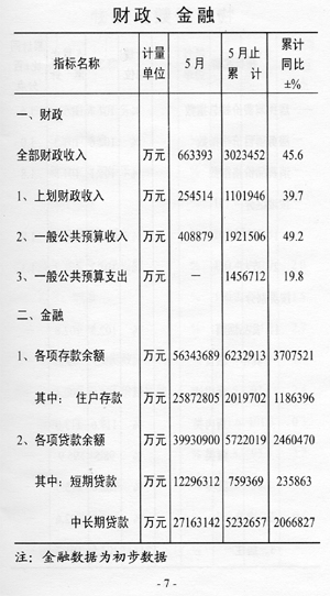 一一金融形勢(shì)穩(wěn)定。截至5月底,全市本外幣各項(xiàng)存款余額5634.4億元,比年初增加623.3億元。其中,住戶存款2587.3億元,比年初增加202.0億元。本外幣各項(xiàng)貸款余額3993.1億元,比年初增加572.2億元。