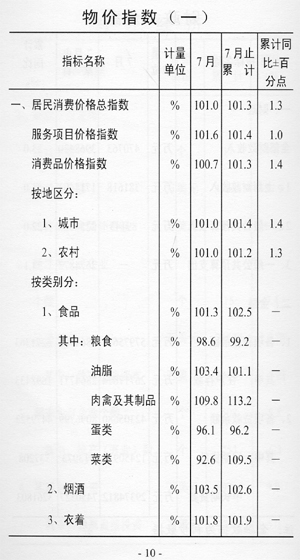 ——物價總體平穩(wěn)。全市居民消費(fèi)價格總指數(shù)101.3,同比提高1.3個百分點(diǎn);商品零售價格總指數(shù)100.8,同比提高1.7個百分點(diǎn);農(nóng)業(yè)生產(chǎn)資料價格指數(shù)94.6,同比回落6.1個百分點(diǎn);工業(yè)生產(chǎn)者出廠價格指數(shù)97.9,同比提高3.6個百分點(diǎn)。