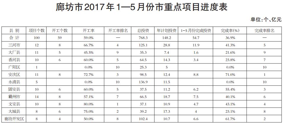 3、廊坊市2017年1-5月份集中開工項(xiàng)目進(jìn)度表
