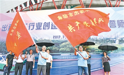 7月3日,我市出租車(chē)行業(yè)創(chuàng)建全國(guó)文明城市誓師大會(huì)在體育場(chǎng)舉行。記者 金志超 攝
