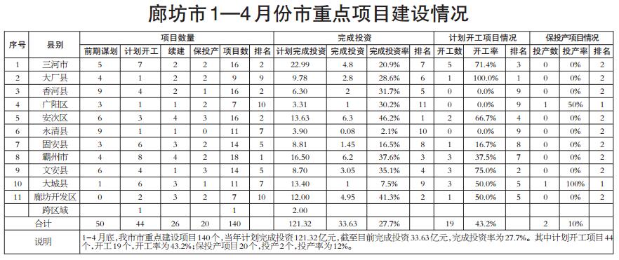 我市1—4月份省、市重點(diǎn)和市集中開工項(xiàng)目進(jìn)展情況