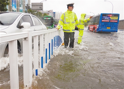 市交警二大隊(duì)根據(jù)交通流量、流向變化及積水情況,安排警力立即充實(shí)到南門(mén)、麥洼、御龍等重點(diǎn)路口,在積水路段部署警力專(zhuān)人管理,并組織警車(chē)增加復(fù)雜路段巡邏密度,通過(guò)指揮手勢(shì)、大聲喊話和啟動(dòng)警燈等方式,及時(shí)提示行人和車(chē)輛注意安全通行,隨時(shí)為遇到困難的群眾和車(chē)輛提供幫助。同時(shí),大隊(duì)出動(dòng)警力堅(jiān)守市區(qū)解放橋、愛(ài)民橋、民心橋、萬(wàn)莊橋出入口,密切注意橋下通道積水情況,指揮車(chē)輛安全謹(jǐn)慎通行。